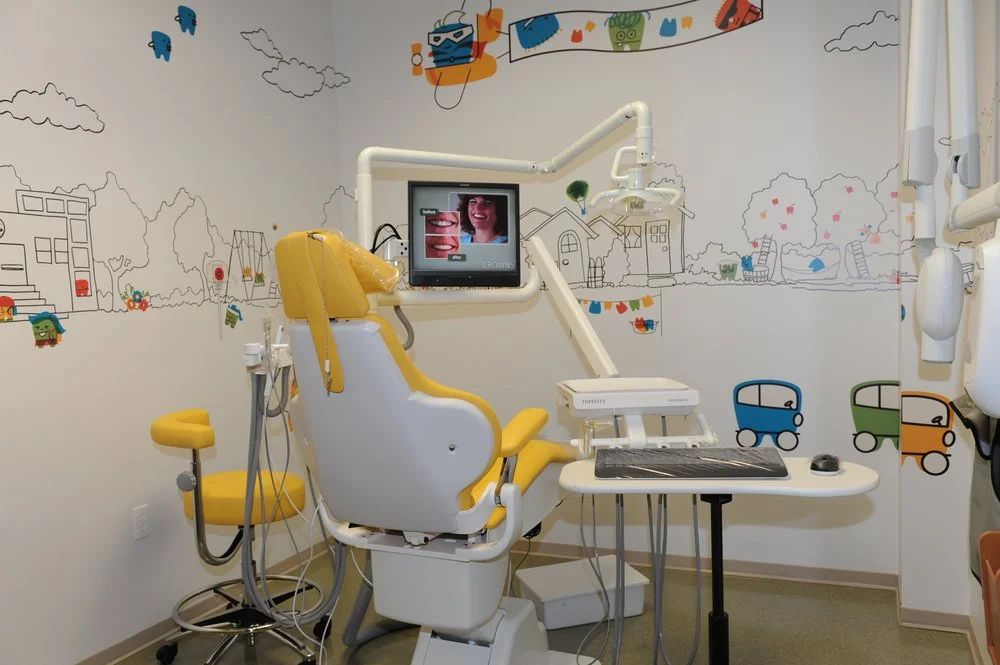 I collaborated with a muralist to create a continuous landscape featured in the exam rooms. Kids can relax and try to spot all the fun activities while the dentist completes their examinations.